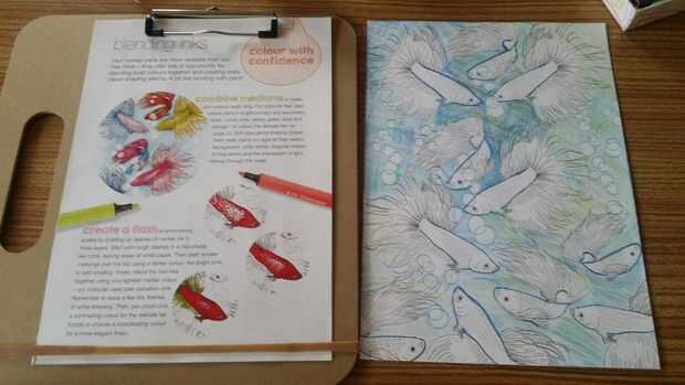 Forma creativa colorante peces usando marcadores de terapia de arte grande en un fondo de agua parte 2 (1 / 13 paso)