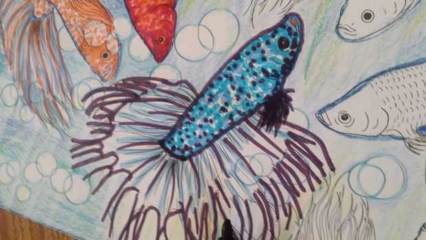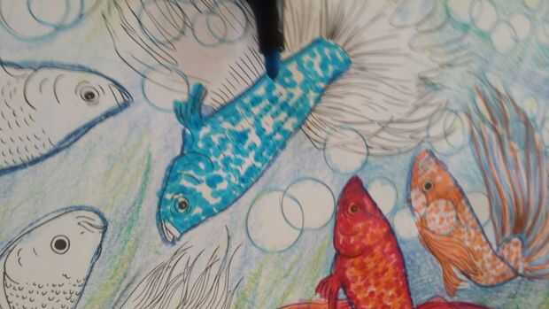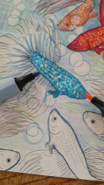 Forma creativa colorante peces usando marcadores de terapia de arte grande en un fondo de agua parte 2 (6 / 13 paso)