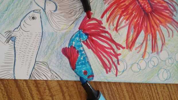 Forma creativa colorante peces usando marcadores de terapia de arte grande en un fondo de agua parte 2 (7 / 13 paso)