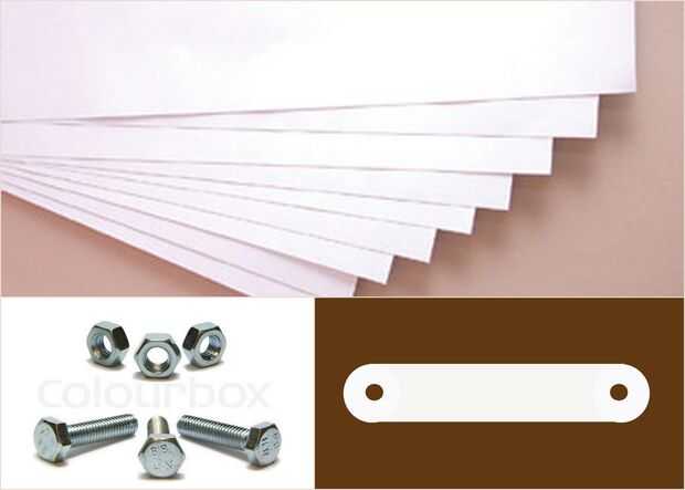 He utilizado cartón blanco grueso. Y para colocar las piezas juntas, uno puede utilizar tuerca pernos y ejes (como se muestra en la imagen).