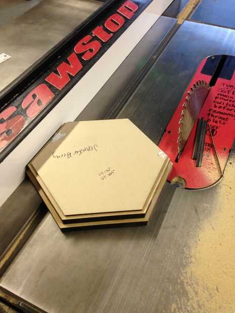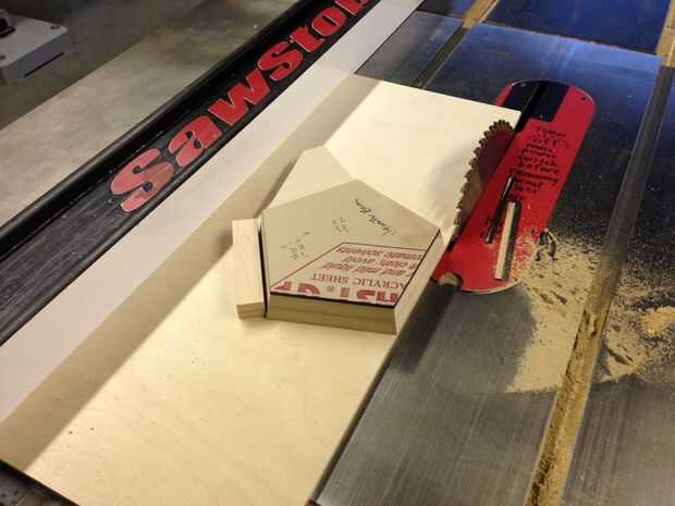 El Pentágono es complicado, ya que no se utilice el tope sobre la mesa de sierra sin una plantilla. Así que uno! Aquí es donde la chatarra madera y rápidos y sucios de los sujetadores son útiles.