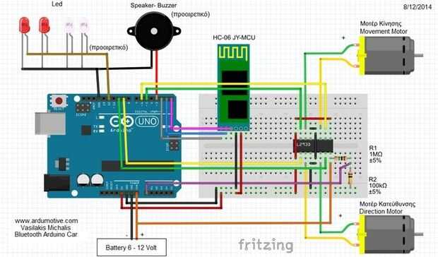 Antes de usted necesita entender lo que es puente en h. En un coche de RC son dos motores. Uno para conducir el coche hacia adelante y hacia atrás y otro para dirección izquierda o derecha. Para lograr esto tenemos que girar el motor en sentido horario o antihorario en consecuencia. Esto se hace mediante el uso de h-puente. El puente h se diseña para conducir el motor en sentido horario y antihorario. Para cambiar un motor, se debe invertir la alimentación y esto es lo que hace el puente en h. Leer más aquí. Puente de H puede hacerse con switches, transistores y relés. Vamos a utilizar puente h IC. Puede utilizar transistores para esto, pero ocupa más espacio. L293D IC ocupan menos espacio. Y fáciles de montar. Pin de salida del Arduino puede suministrar sólo 50 mA de corriente. Pero necesitamos más corriente para motores. Que realiza este motor controlador IC.