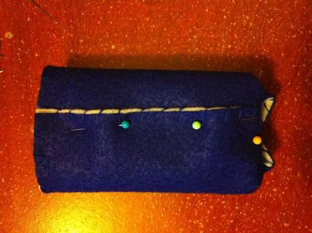 Una vez que se cubrió las dos piezas, coser el cierre de piezas. Usted puede cualquier puntada mano ellos juntos o puede utilizar una máquina de coser, lo que usted prefiere. Pero si usted tiene una máquina de coser, lo prefiero. La máquina de coser hace el proceso más rápido. Una vez que se cose, agarra su paquete de tejidos en la tela. Doblar los bordes según el tamaño de la manada de los tejidos. Una vez plegada, puede usar alfileres para mantenerlo abajo si usted quiere. Coser los bordes cerrados juntos y, viola, ahora tienes un soporte de tejido de bolsillo.