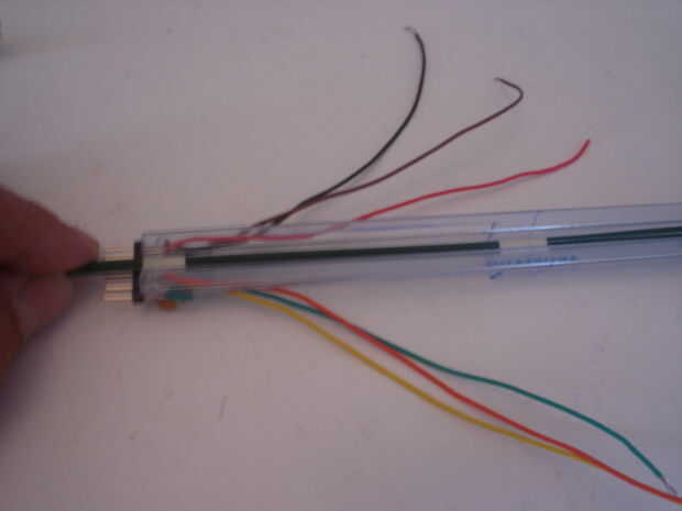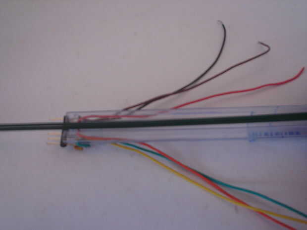 Até dos de los cables de tallo con la cinta adhesiva y una gota de pegamento.