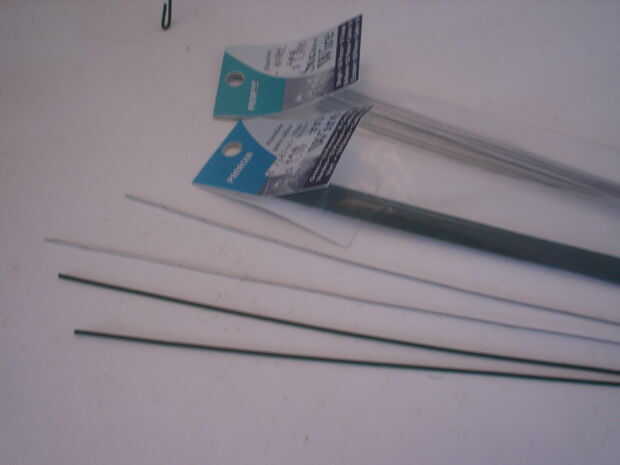 ¿Pero sería el material adecuado para él? Después de otra ronda de mirar a través de la caja de componentes y caja de herramientas. Me encontré con estos calibre 16 y calibre 18 vástago de alambre, que mi esposa les de arte y tienda de artesanías, la izquierda de su proyecto de flores falsas.