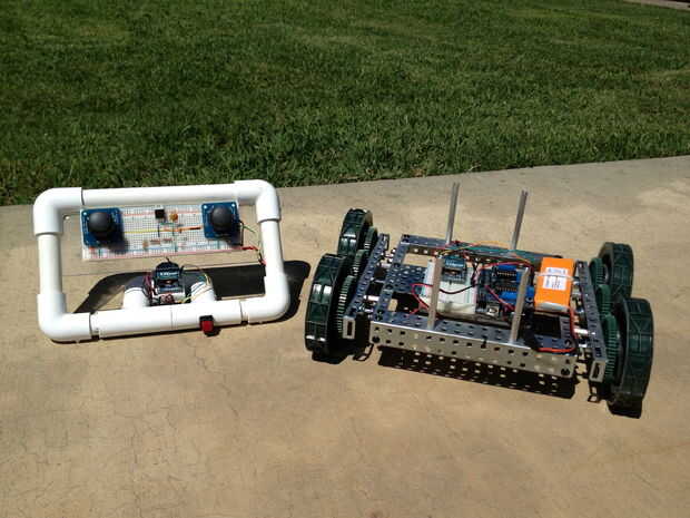 Por lo tanto, inevitablemente hay detalles que debería tener incluido pero no pudo así que siéntete libre hacer un comentario y se rellene de algunos espacios en blanco. Mi esperanza es tomar este sistema y hacer que funcione con múltiples usuarios como en competiciones de la FTC y FRC. Creo que el XBee es versátil y capaz de manejar 2 o incluso 3 estudiantes controlar un robot solo como un equipo. No añadir líneas adicionales analógicas o digitales también deberían ser un problema para aumentar la funcionalidad de telecontrol único. Un servo o un motor extra sería un buen lugar para empezar.