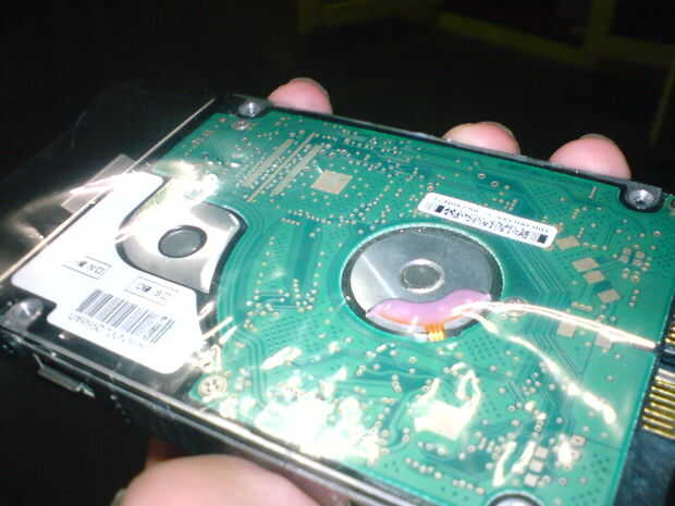 Yo simplemente cubrió la parte inferior del disco duro (circuito) con una lámina de plástico para evitar que la eléctrica de cortocircuito.