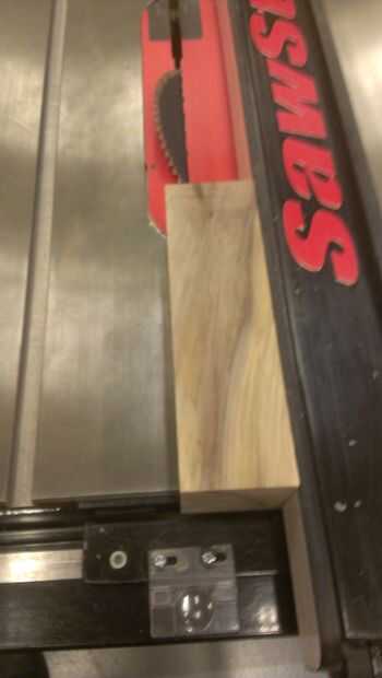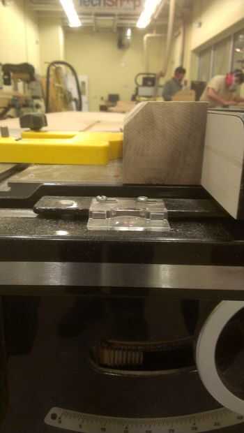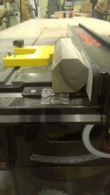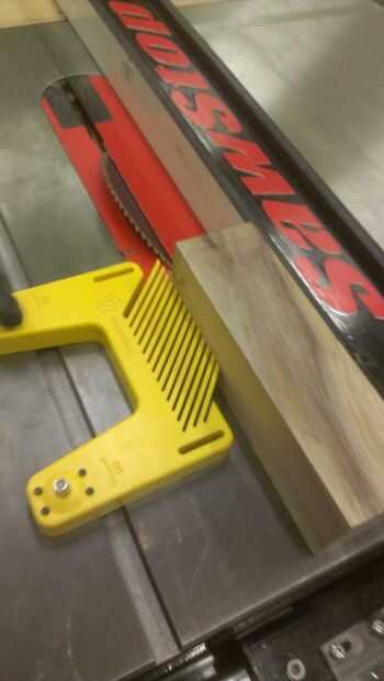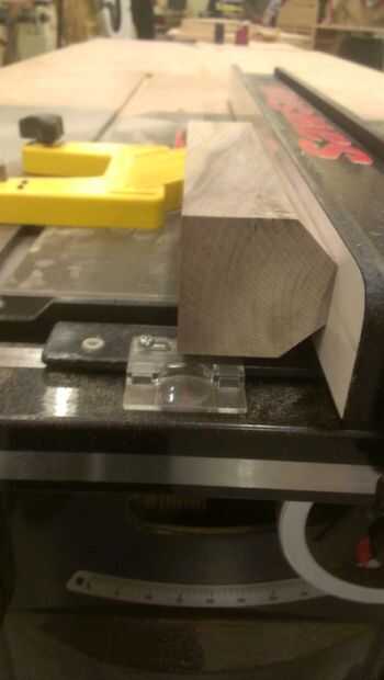 I utiliza una tabla de canto biselado, ayudó a mantener ese fragmento de callejero de la esquina de saltar y mantener el espacio en blanco bonito y apretado contra la valla. Sólo tenga cuidado donde pones tus manos, como esa hoja sale el lado izquierdo del bloque de corte de la esquina. Utilice el palo de empujar si quiere.