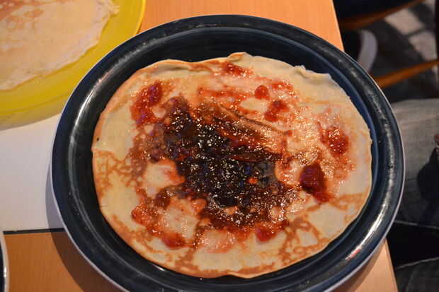 Paso 1: Cubrir la crepe con mermelada.