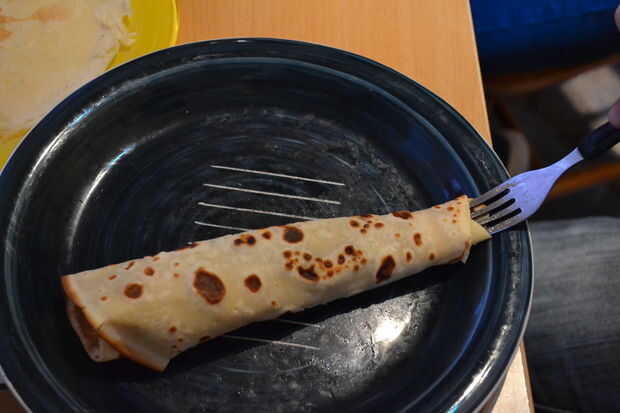 Hola chicos! Hoy voy a enseñaros cómo hacer una tortilla perfecta.Para la mezcla de panqueques:110g / 4oz de harinapizca de sal2 huevos200ml/7fl oz leche mezclada con agua 75ml/3fl oz50g / 2oz de mantequillaPara servir:de azúcar impalpablejugo de lim