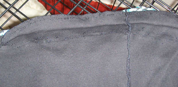 Tomar la camisa lavada y vuelta adentro hacia fuera. Utilizando un descosedor, rip Abra la costura de la parte inferior (o borde dobladillado de la camisa).