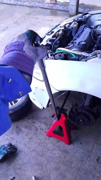 A continuación apliqué poca fuerza y el perno se convirtió! Lo hice con mi mano derecha sufren dolores carpal tempranos. Fue tan fácil! Solo la barra del interruptor de 40 pulgadas y no tubo tramposo!