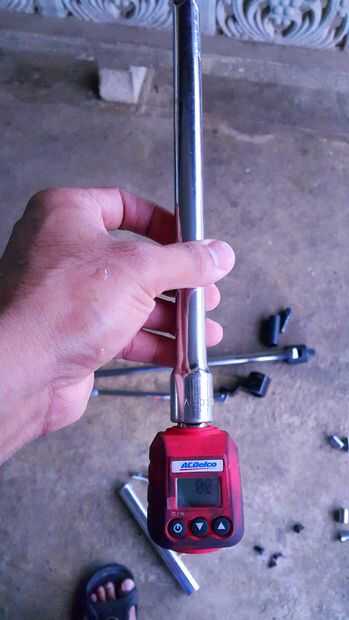 I lubricada la roscas de perno y la arandela y volver a usar mi herramienta de torsión. Usé otra vez el soporte de la polea y apretar el perno de 1/8 de vuelta. No hay manera siempre va a salir de un giro hacia la izquierda del cigüeñal.