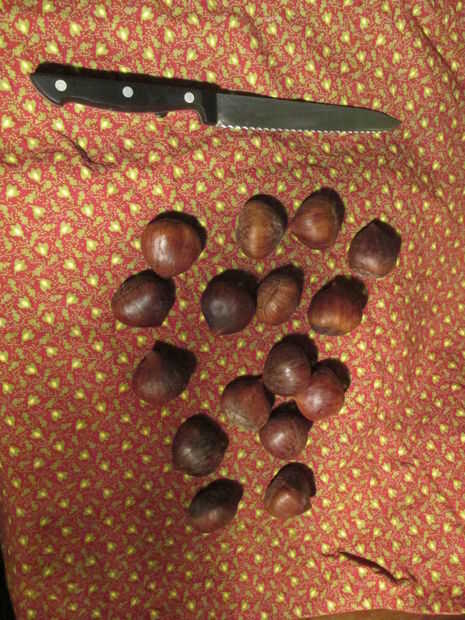 No me gusta cortarlas. Castañas son muy resbaladizas y he encontrado que la manera más fácil, más segura es utilizar un cuchillo serrado, no muy fuerte, y acabo de ver x grande en.