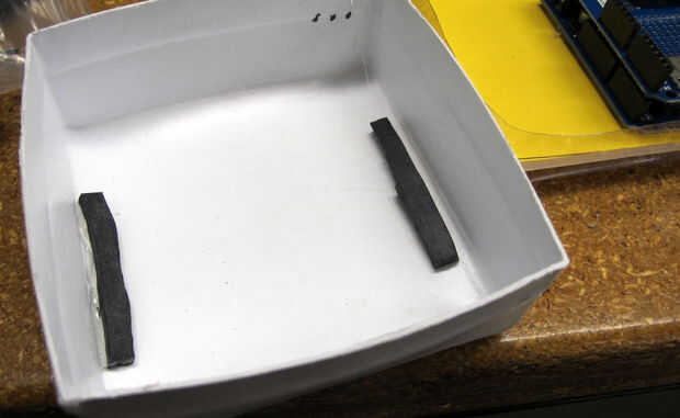 Cortar una capa aislante con una tijeras o razorblade he utilizado papel o tela, pero asegúrese de que no es ni conductores ni aislantes (no quieres que tu arduino para derretir o corto)