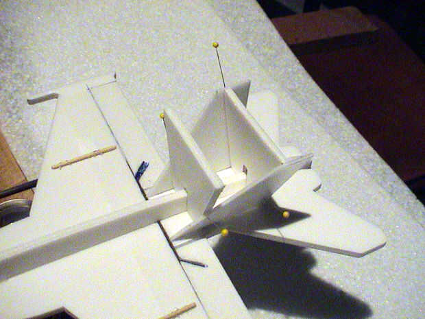 Paso 20: Instale las aletas de la cola, utilizando la plantilla de alineación, con pegamento seguro de espuma.
