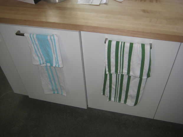 Toallas: utilizado para el secado de manos, secado de platos y limpiar la cocina general. Ser consciente y no Cruz-contaminar. Para evitar confusiones, inmediatamente poner toallas sucias en el cajón de abajo para el lavado.