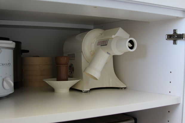 El exprimidor de campeón se mantiene en "cosas raras" gabinete. Guarde con el tubo hacia abajo por lo que se ajusta correctamente en el gabinete.