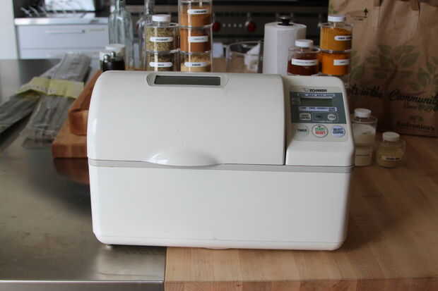 Se trata de una panificadora de Zojirushi, notable por el hecho de que tiene doble paletas y una orientación horizontal pan. (Más sabroso Maillard reacción rica superior corteza!)