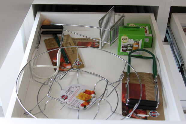 En los gabinetes a la izquierda de la nevera y los cajones superiores debajo de los gabinetes.