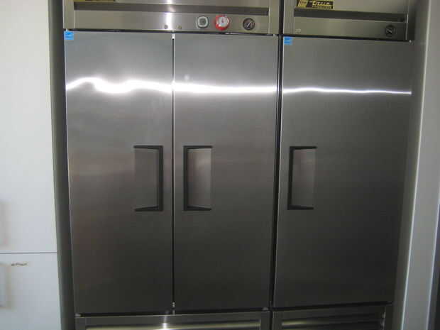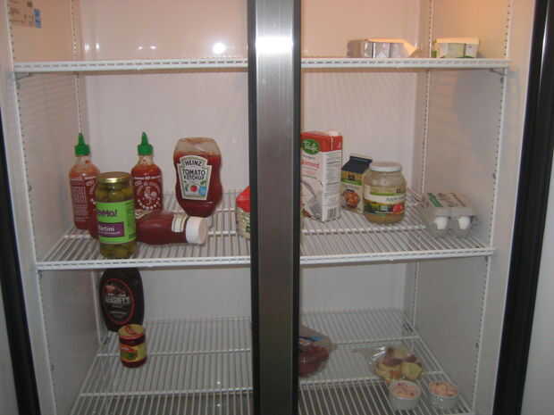 Encuentra directamente a la derecha al entrar en la cocina de prueba. El refrigerador es una unidad de doble puerta a la izquierda, el congelador es una unidad de la solo-puerta a la derecha.