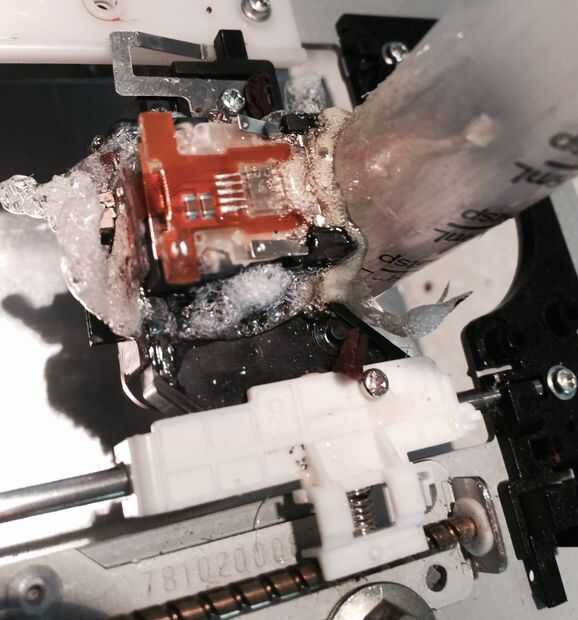 debe haber un semicírculo sobre el pegamento superior de trineo la boquilla de cuentagotas para con superglue unas tres cuartas partes por encima de la placa de impresión