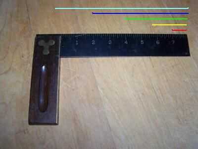 Mi método preferido para cuadrar un cuadrado implica el uso de un archivo. Asumir que las piernas de esta Plaza están demasiado abiertas. El ángulo entre las dos piernas es mayor que 90 grados. Hacer un movimiento de archivo como se muestra por la línea roja. Hacer otro como se muestra por la línea amarilla. Hacer una tercera, como se muestra por la línea verde. Hacer un cuarto como se muestra por la línea azul. Hacer todavía otra como se muestra por la línea azul. Compruebe a menudo la plaza para la escuadra. Repita el patrón de presentación hasta que la Plaza es realmente cuadrada.
