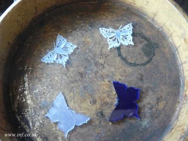 3. Las formas del molde. Para molde de las mariposas les presionamos sobre un perno de balanceo.