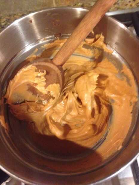 Vierta el caramelo en baño María y revuelva hasta que se derritan.