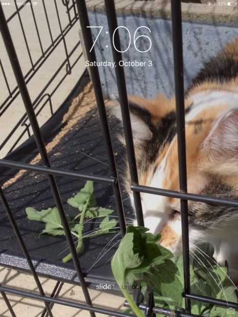 Algunos días puso en una jaula pequeña para que los otros gatos no robaría su alimento medicado.