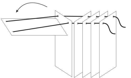 Coloque el extremo de cada tabla justo detrás de los agujeros de cuerda de su vecino, como se muestra.