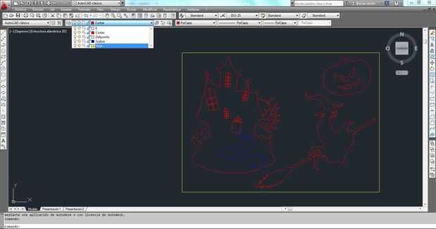 1. en este diseño específico, los cuadros fueron dibujados con Autocad. Puede descargar imágenes gratuitas y copiarlos o también puede utilizar su propia imaginación. Tres capas crearon en tres colores diferentes: