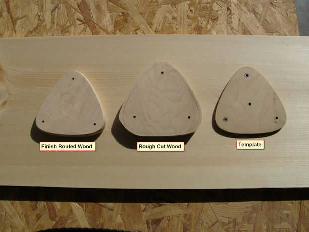 - Finalmente la izquierda es una pieza de madera acabada que es la forma exacta de la plantilla y que también tiene una curva muy bonito corte el borde de la misma.