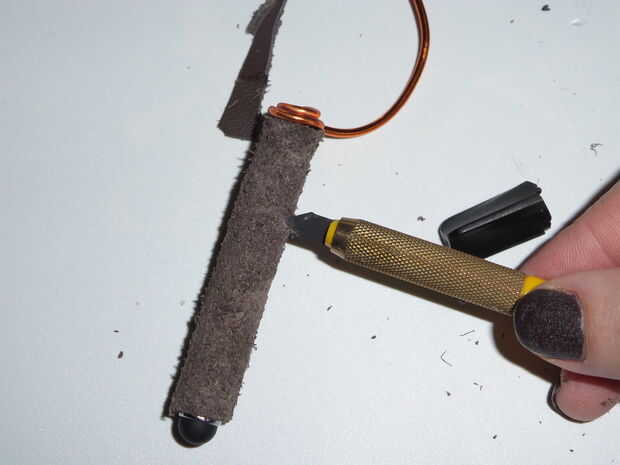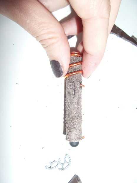 Hacer un ángulo recto en el extremo del alambre y pegar en.