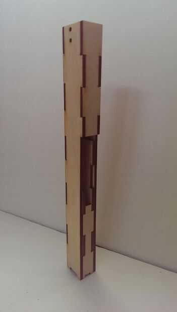 Cada caja de engranaje encaja en un 1'3 x 1' 1/8 madera contrachapada. Para este equipo de proyecto 16 unidades de vivienda fueron laser corte y construido. Hay ocho viviendas a cada lado de la máquina.