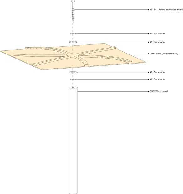Haga un orificio pequeño en la hoja del látex en lugares apropiados del pistón.