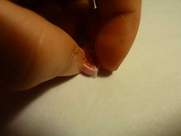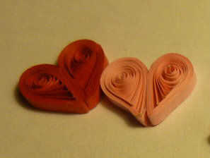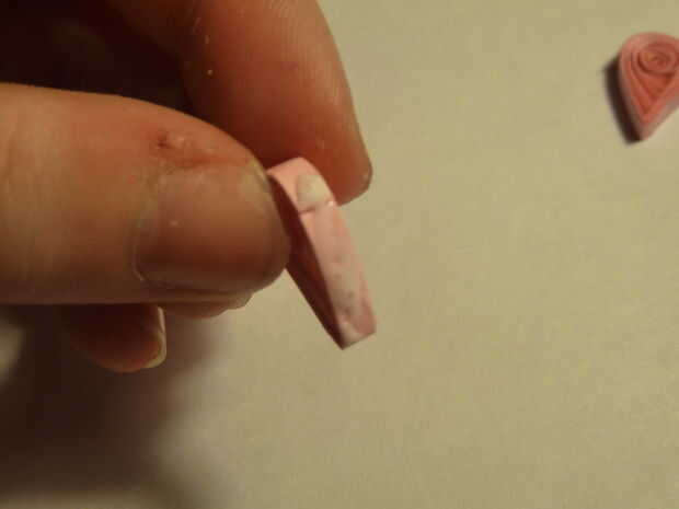 Hacer dos lágrimas del mismo tamaño. Pegar juntos donde son los puntos de las bobinas pellizcados hacia abajo en el centro. Esto ayuda a crear un corazón simétrico mirando.