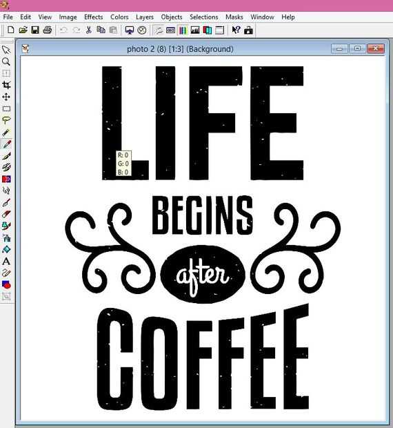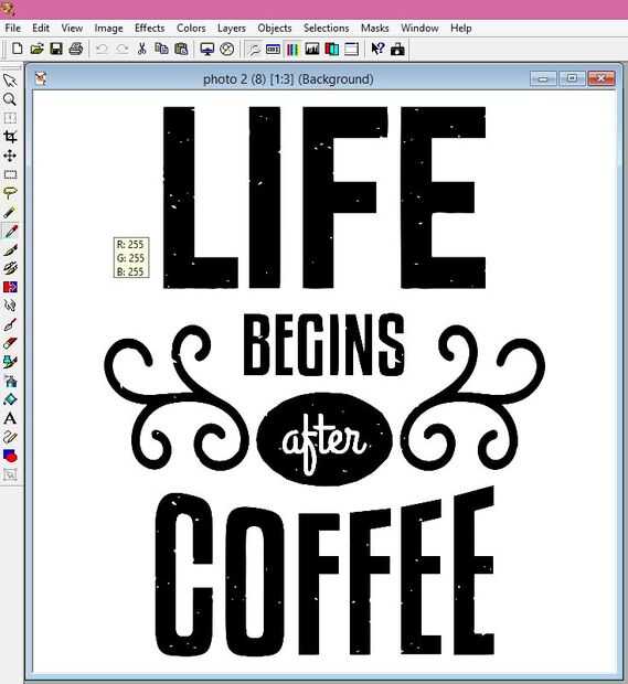 Estoy utilizando Jasc Paint Shop Pro para editar mi imagen. La imagen de sí mismo ya era negro y blanco, pero que desea comprobar para asegurarse de que es el más negro que puede ser y más puede ser. Haga clic en el icono de borrar tinta y coloque el cursor sobre la parte negra de su diseño. R, G y B deben ser 0. Luego coloque el cursor sobre una zona blanca y el R, G, y B debe ser 255. Esta imagen está ahora lista para ser impreso.