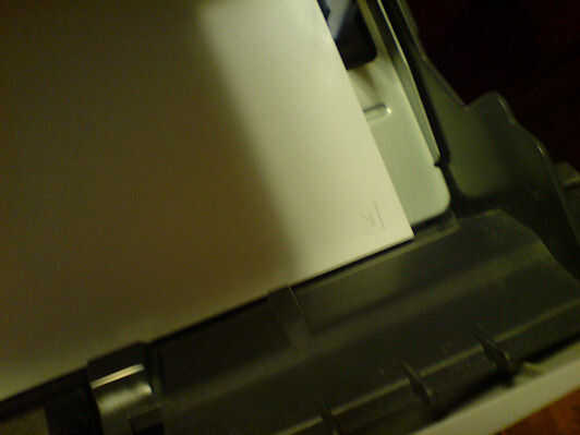 0) abre la bandeja de papel de la impresora y haga una marca pequeña en uno de los rincones de la página superior (ver imagen).
