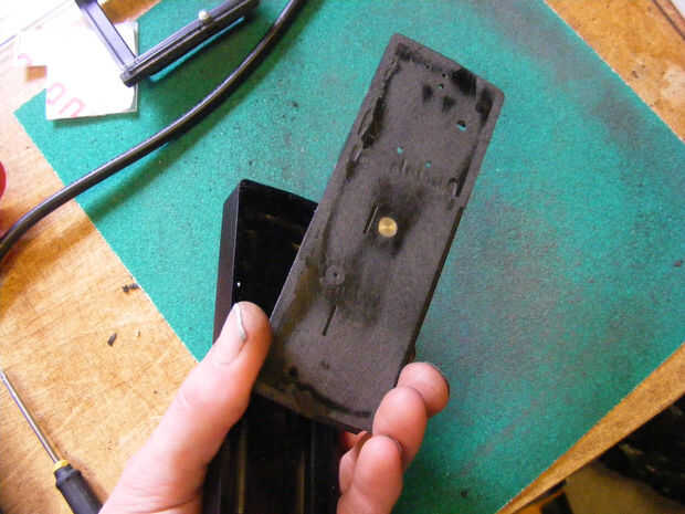 compartimiento de la batería de una cámara super8, la espalda necesita lijado plano, también proporciona una clave para el pegamento.