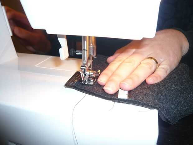 Ranura interior interior exterior y coincidir las aberturas. PIN y comience a coser alrededor para fijar el interno al externo. Este paso es algo complicado - va manipulando toda la bolsa alrededor de la máquina de coser. Encontramos que la máquina de coser no le gustaba tener el vinilo en la parte superior.