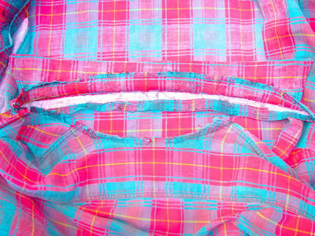 Quite las costuras de los pantalones vaqueros y camisetas que utilizará para la tela y el forro.
