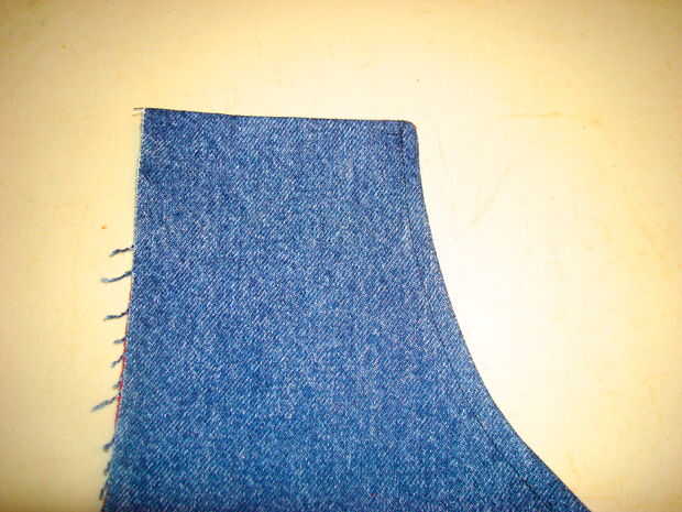 Con derecho, coser el bolsillo a bolsillo forro comienza en la parte superior de la bolsa y el borde curvo como se muestra.