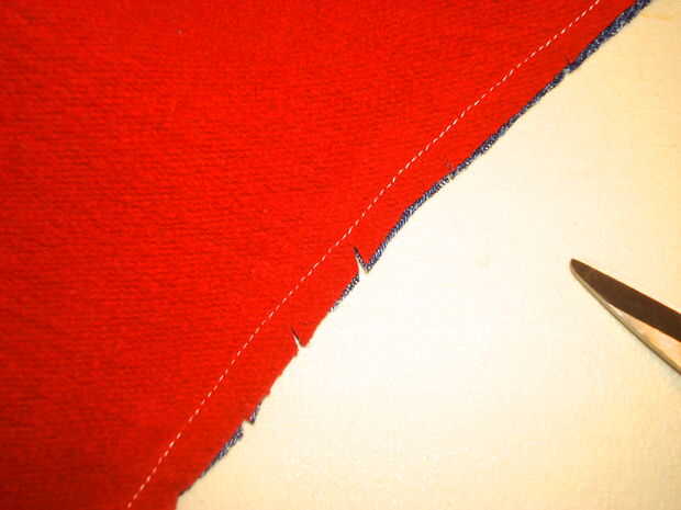 Parte superior coser el borde curvado como se muestra y pulsar.