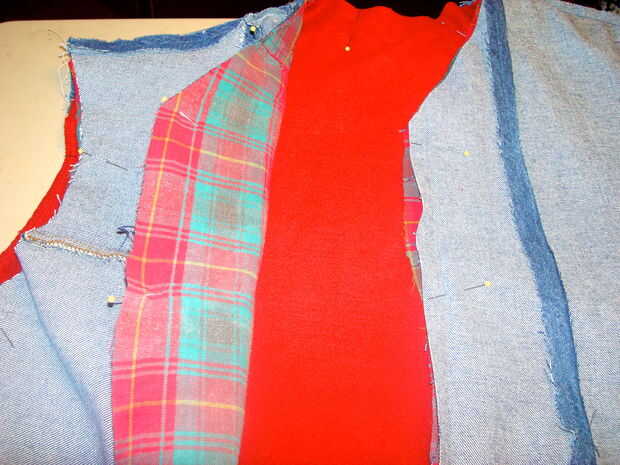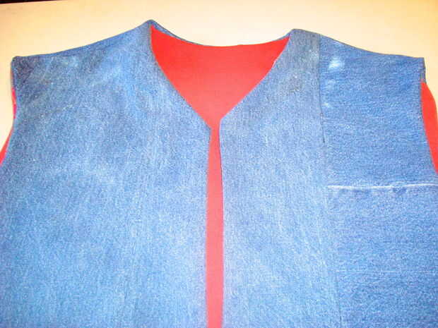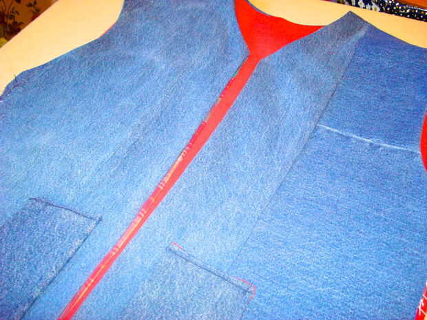 El chaleco es muy pesado haciendo costuras muy gruesas que se superpondrán y es difícil de coser en una máquina normal de coser. Será coser las costuras laterales para evitar daños en la máquina de coser de mano.
