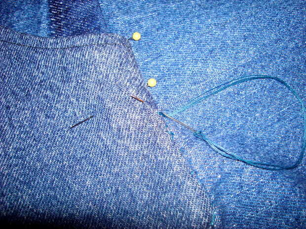 Con hilo grueso mano coser el lado chaleco haciendo ajustes para las puntas por clavos en las áreas que necesitan costuras cosido alrededor de la manga, cuello y dobladillo.