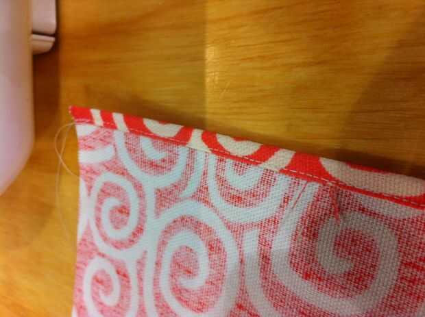 Al final de este paso debe tener dos piezas que se dobladillan en el lado que será la parte superior de la bolsa.