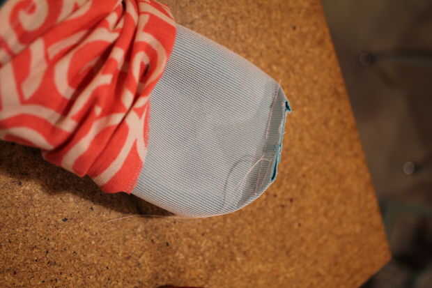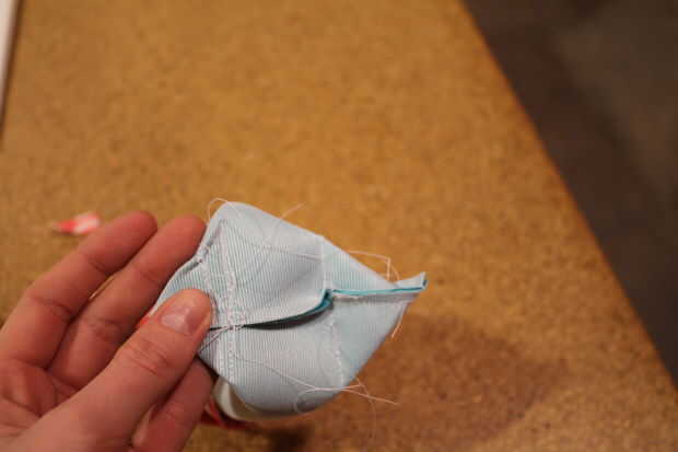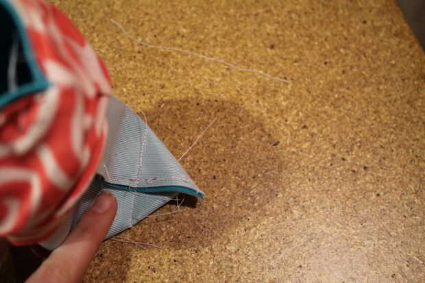 Tome su teléfono fuera de la bolsa. Coser a lo largo de la marca que hiciste. Corte la tela adicional.