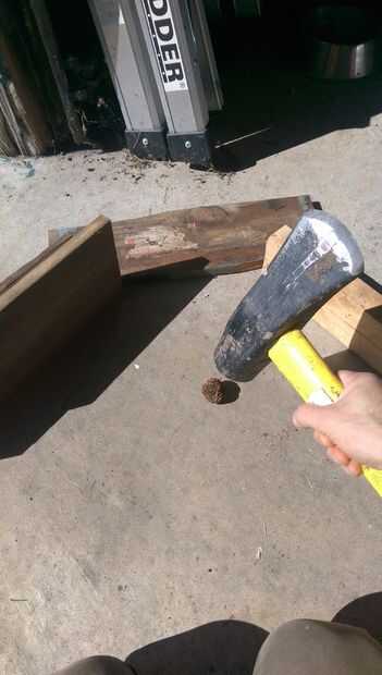 Cuando las nueces están secas, su tiempo para obtener la carne de la tuerca de la cáscara. Cáscaras de nogal negro son increíblemente duros, y una galleta de la tuerca estándar no funcionará. Un maul que hace el truco un poco mejor. Configurar piezas de madera para coger los trozos de cáscara de dispersión en todas partes al romperse. No hace falta ser un duro golpe, puntea el martillo en la tuerca hasta que las grietas abiertas.