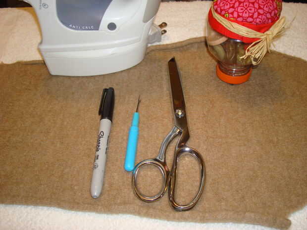 Nota: Su talla va a determinar cuanta tela necesitas. Necesita 2 piezas de entretela, forro y tela fieltro suéter para cada par de fundas de calzado. Debe utilizar jabón de lavar para fieltrar el suéter. Simplemente añadir el jabón como lo haría con cualquier otra carga de ropa. Tenía planes para la tela impresa de este Jersey pero habría dado los zapatos un aspecto lindo. Puede coser estos trazadores de líneas de mano y estaría muy bien. Una máquina es más rápida, pero son tan pequeñas todavía no tardaría mucho tiempo para coser.